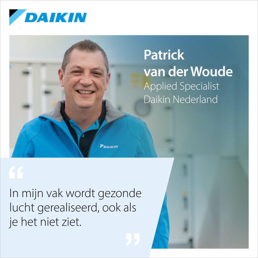 Hij is verantwoordelijk voor alle industriële en commerciële ventilatieoplossingen binnen Daikin. Al jaren zet hij zich in voor iets wat je niet kunt zien, maar wat je wél voelt: gezonde lucht. Sinds COVID-19 is het bewustzijn rondom luchtkwaliteit gelukkig toegenomen – en dat is hard nodig, vertelt hij. Want lucht is onzichtbaar, maar de gevolgen van slechte luchtkwaliteit zijn dat allerminst.