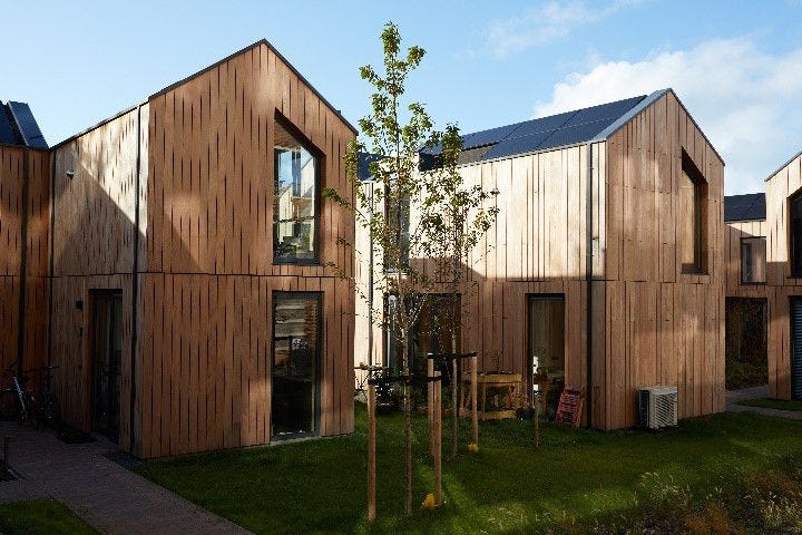 In het Haagse Loosduinen zijn op het binnenterrein van het appartementengebouw Harvest elf ‘Tiny Houses’ gerealiseerd. Wonen in het groen, maar toch midden in de stad. De hoge duurzaamheidsambities van de NOM woningen komen naar voren in het gebruik van kruisgelamineerd hout (CLT), een warmtepomp, Thermo Ayous geveldelen en PV-panelen op het dak. E-installateur Van Houwelingen en W-installateur Simon hebben met veel plezier aan deze complete woningen – die gewoon voldoen aan het Bouwbesluit – gewerkt.