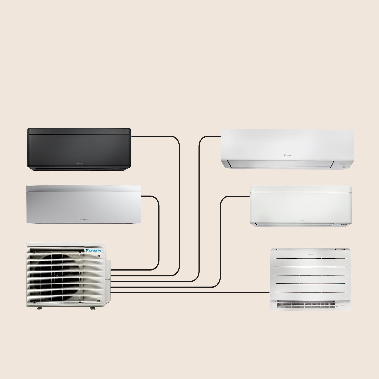 Verwarm en koel meerdere kamers door één buitendeel aan te sluiten op maximaal vijf binnendelen