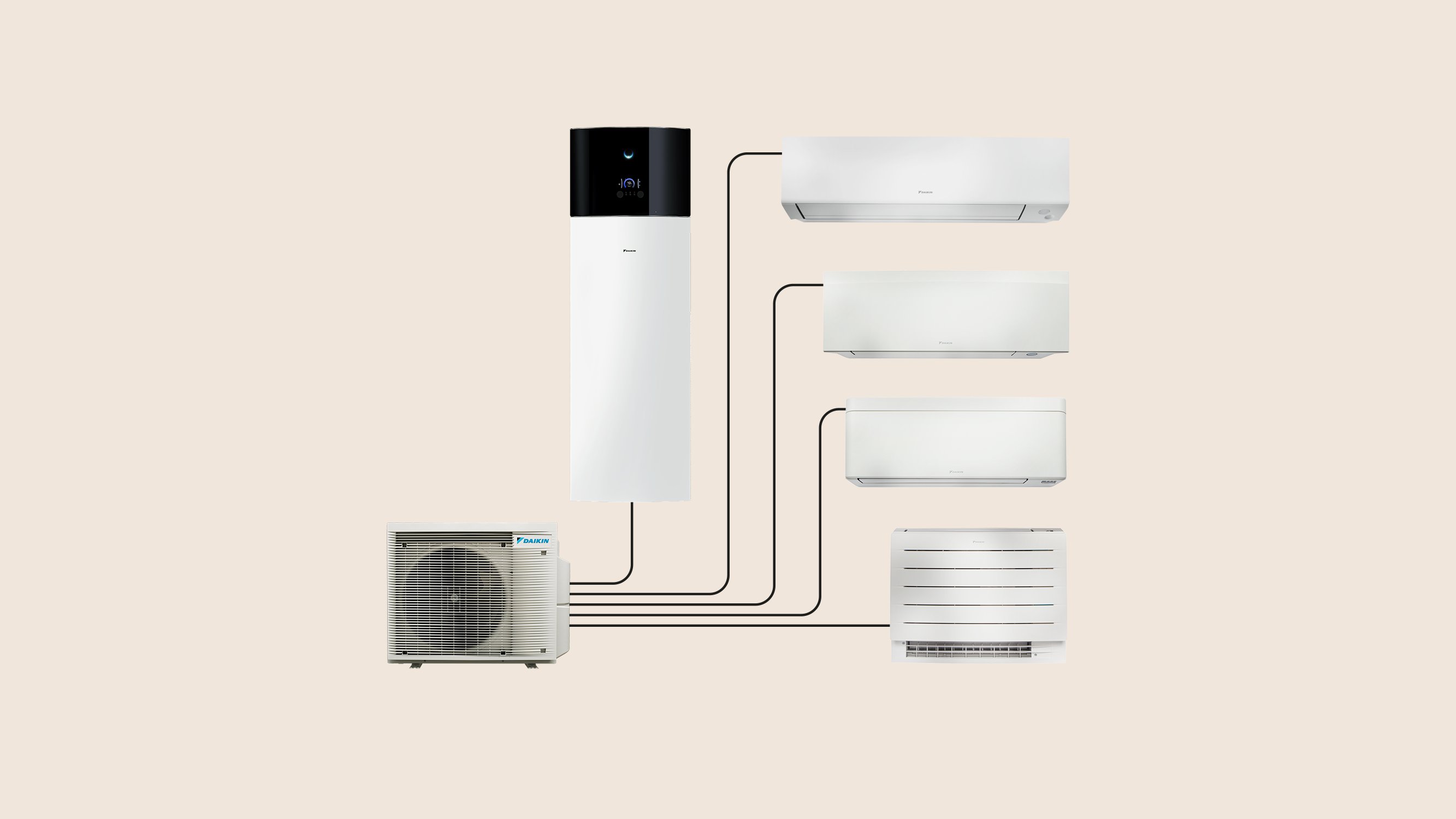 De Daikin Multi+ is ontworpen voor maximale energie-efficiëntie. Het is een toekomstbestendig en volledig gasloos alles-in-één aircosysteem voor het besparen van ruimte, energie en kosten: