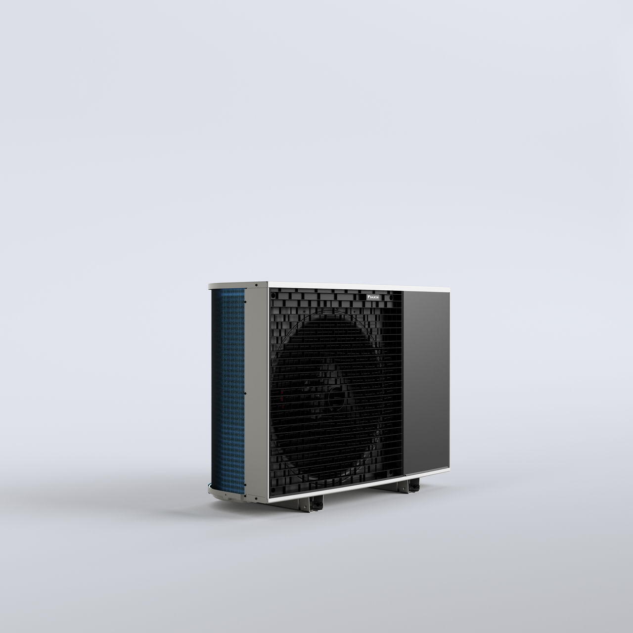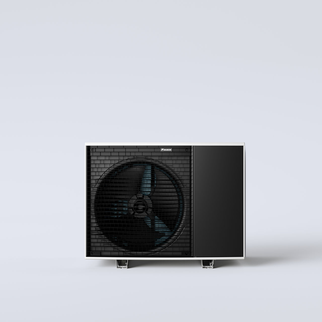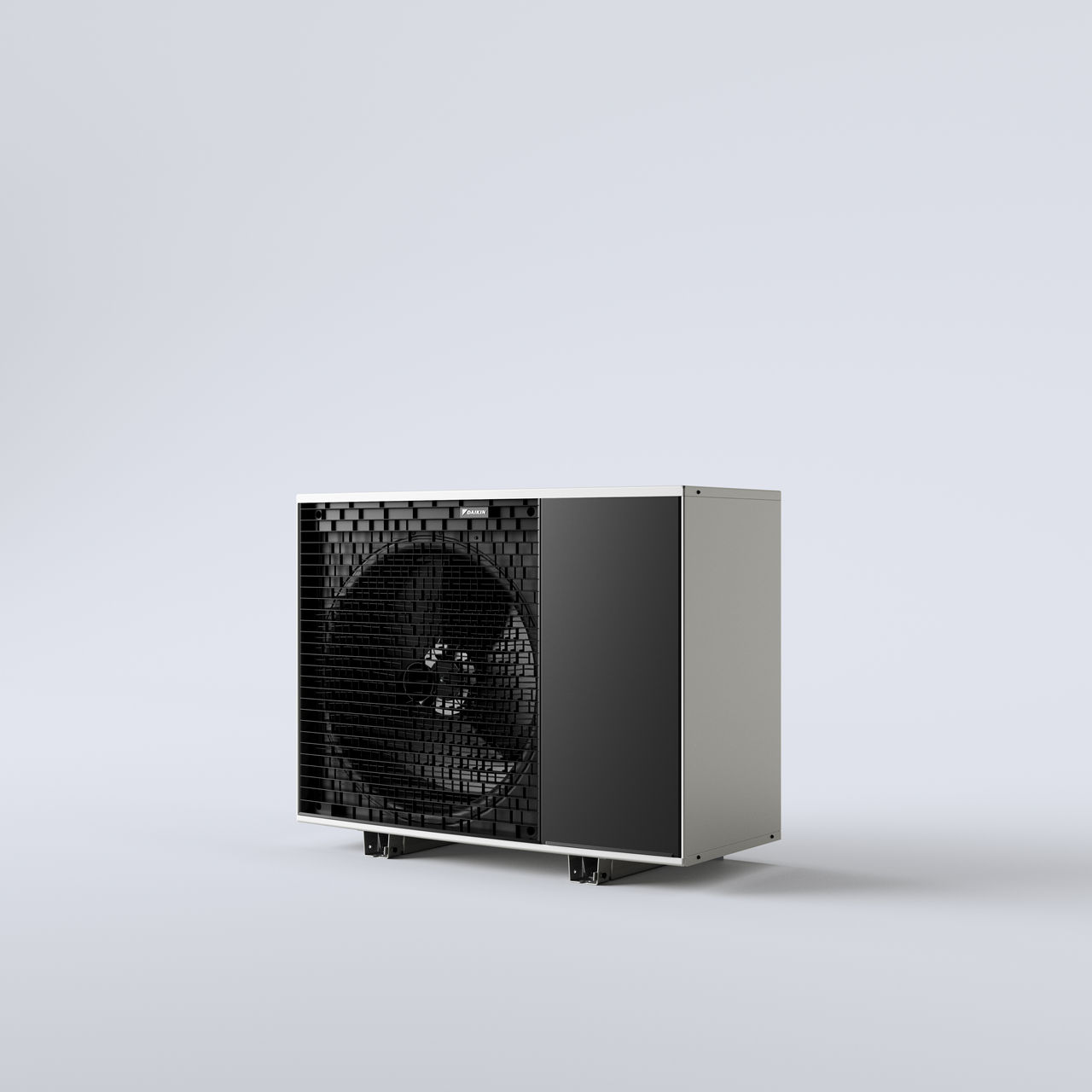 De moderne, strakke buitenkant van de nieuwe unit, inclusief zwarte lamellen, zorgt ervoor dat de ventilator minimaal zichtbaar is. De reflecterende afdekking en zijpanelen reflecteren de achtergrondomgeving, waardoor de unit discreet opgaat in de omgeving.