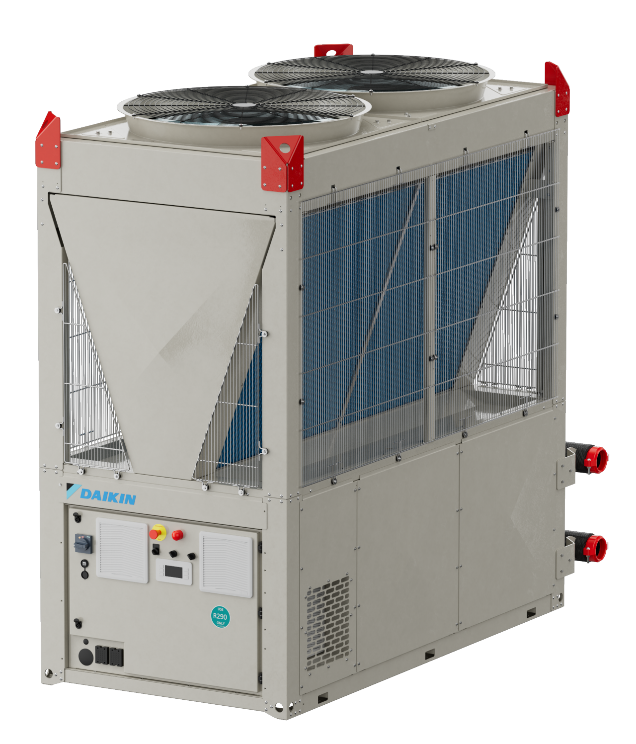 De EWA(Y)K-CZ van Daikin is een invertergestuurd lucht-waterkoelaggregaat en warmtepomp met R-290 — een natuurlijk koelmiddel met een aardopwarmingsvermogen dat vrijwel nul is.